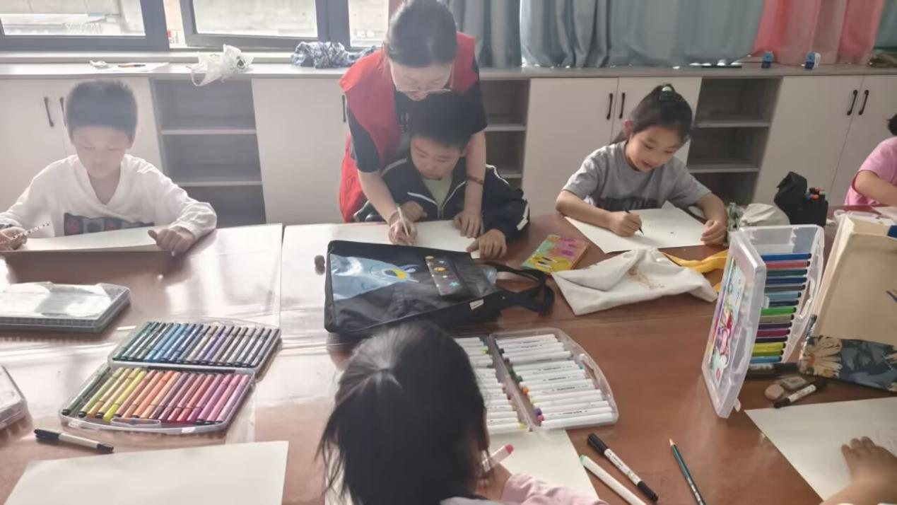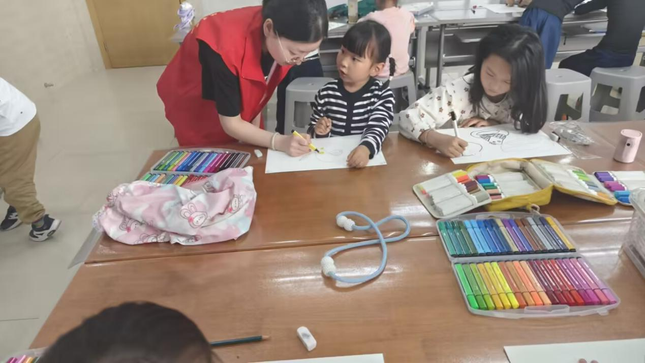 5月24日下午兩點半,朝霞居委會內,迎來合肥大學能源材料與化工學院的2名志愿者,他們熱心善良,同朝霞居委會的美術老師一起教小朋友學習畫畫,激發了小朋友們對畫畫的熱情。