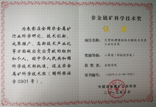 該團隊與桂林鴻程礦山設備制造有限責任公司共同完成的《大型縱擺磨粉機關鍵技術及其工業化應用》項目獲得科技進步類二等獎。這是我校首次獲得該項獎勵。