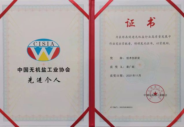 無機鹽協會表彰決定指出,為促進我國無機鹽工業規范、健康、高質量發展,充分調動廣大無機鹽從業者的積極性和創造性,宣傳和推廣新時代無機鹽各領域蹄疾步穩推進高質量發展的先進典型和寶貴經驗,表彰和鼓勵在優化結構、自主創新、綠色發展等工作中作出突出貢獻的個人,無機鹽協會決定,授予秦廣超56人第二屆中國無機鹽工業協會先進個人稱號。