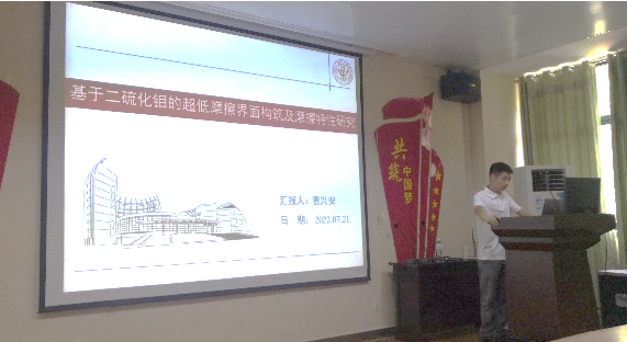 應胡坤宏教授邀請,我校2016屆碩士畢業生、現為鹽城工學院教師曹興安博士于721日至7月22日來我院開展了學術交流活動。曹興安博士結合自身讀博和工作期間的科研經歷,就項目的選題及研究生培養等方面與我院部分教師進行了深入交流,并在我院學術交流中心為研究生代表做了題為《基于二硫化鉬的超低摩擦界面構筑及摩擦特性研究》的學術報告。報告結束后,曹興安博士與研究生們進行了深入交流,毫無保留地分享自己的心得體會,鼓勵大家繼續讀博深造,將一切落實在行動上。