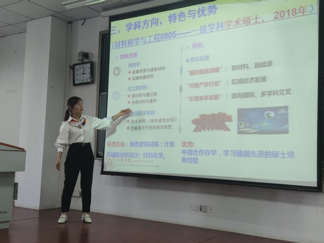 9月23日3點,我院2023年研究生招生宣傳第——蚌埠學院材料與化工工程學院,宣講會如期進行。此次宣講會,我院參與人有徐農教授、朱三娥、劉嶠、姚李副教授蚌埠學院有李宗群院長、殷娜教授等人。我院朱三娥副教授宣講報告,就基本院情、研究生教育概況(學位點、師資、培養模式、獎助體系、各類研究生招生政策等)和相關學科研究生教育的優勢與特色進行詳細介紹報告宣講后各位老師們積極回答現場同學們的咨詢,涉及內容有考試科目、考研準備、獎助體系、研究方向、國際交流等問題。同時,也就今年的考研形勢向同學們分析報考我院的難易程度,鼓勵考研學子堅定目標、勇往直前,認清當前考研形勢,謹慎選擇報考院校和專業。現場交流熱烈,部分學生當場表露出以第一志愿報考我校研究生的意愿。