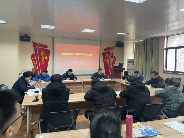 2023年2月21日下午,能源材料與化工學院黨委在34棟材化學院學術中心召開了2022年度專題民主生活會學校黨委副書記劉建中和黨委組織部副部長楊紅到會指導。學院領導班子成員、黨委委員參加會議,院長胡坤宏、科級干部和教工支部書記列席會議,會議由院黨委書記劉沛平主持。