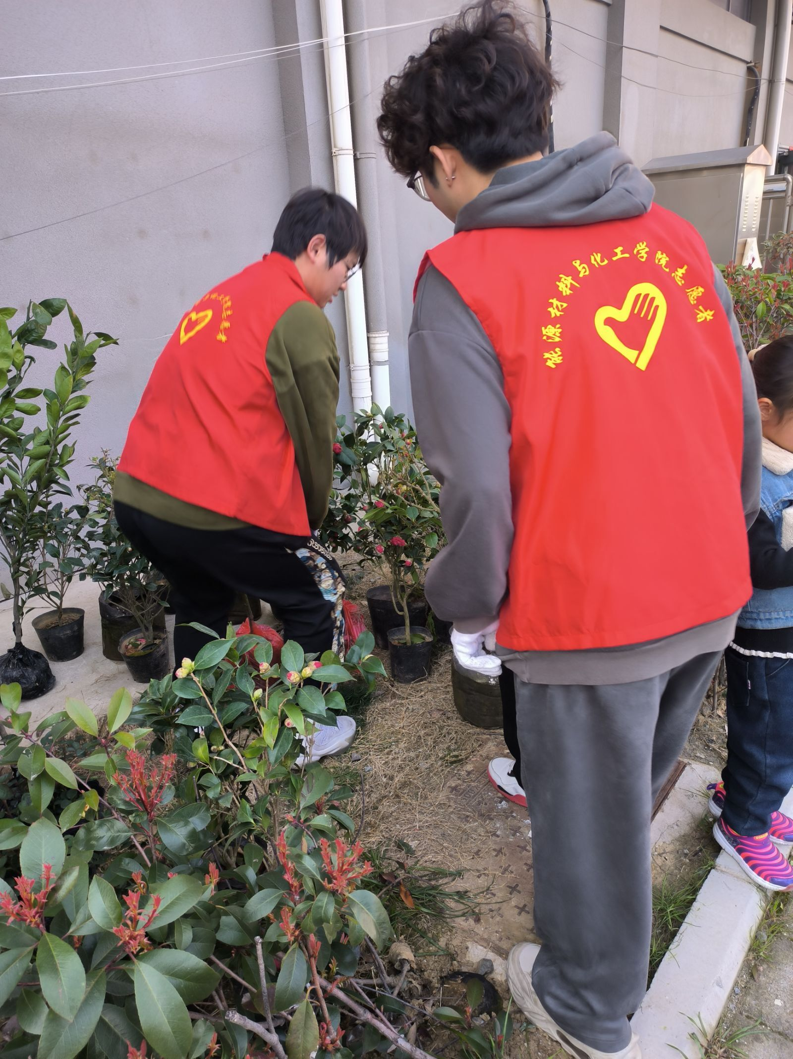 首先,志愿者們進行前集合簽到,跟隨社區(qū)工作人員領取植樹工具以及需要種植的樹木花朵。然后,到達種植樹木的地點挖掘土坑填埋種子。最后,志愿者們通過自己的努力種植了許多小樹木以及花朵盆栽。