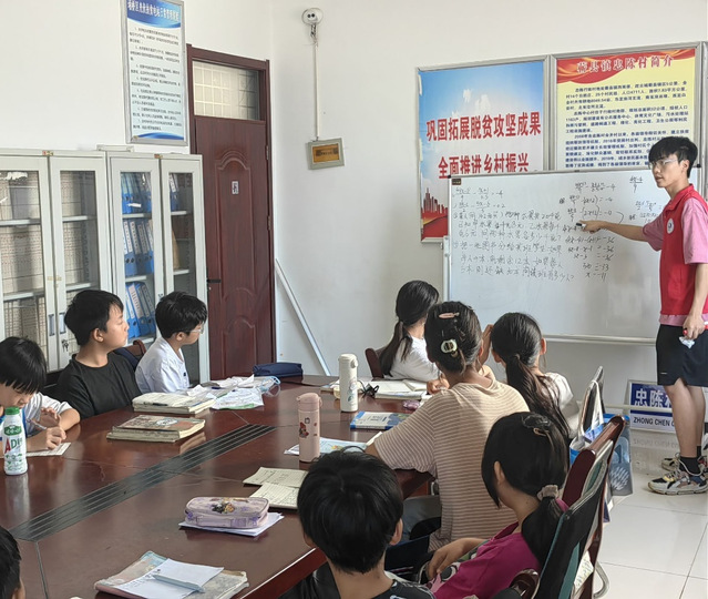 清晨的陽光透過薄霧,輕輕灑在村莊的每一個角落,給這片寧靜的土地增添了一絲溫暖與希望。當地的空氣清新,鳥兒的鳴唱為這一天的活動拉開了序幕。2024年7月20日,合肥大學能源材料與化工學院“三葉草”實踐團隊在宿州市忠陳村的支教活動已進入第五天。