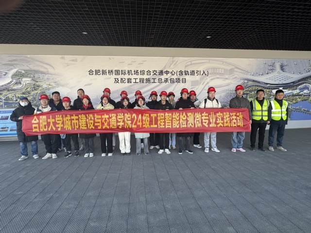 為強化學(xué)生專業(yè)認(rèn)知,鏈接行業(yè)發(fā)展前沿,幫助學(xué)生做好職業(yè)生涯規(guī)劃,鞏固校企合作,將專業(yè)理論與生產(chǎn)實際相結(jié)合,城市建設(shè)與交通學(xué)院“工程智能檢測”微專業(yè)于202519-10日開展校外實踐教學(xué)活動。城交學(xué)院微專業(yè)教學(xué)團隊楊睿、錢宇翔老師帶隊參加本次實踐活動,先后帶領(lǐng)全體學(xué)生參觀合肥新橋國際機場綜合交通中心(含軌道引入)及配套工程施工總承包項目、臨泉縣城鄉(xiāng)供水一體化(群眾喝上引調(diào)水工程)原水官網(wǎng)安全監(jiān)測項目以及大連西路地下綜合管廊項目。