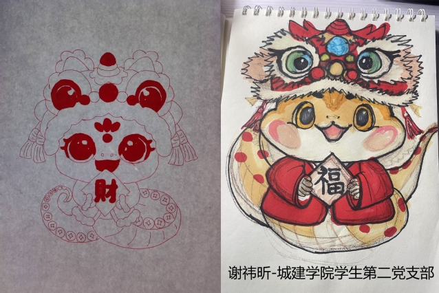 為深入學習貫徹習近平文化思想,激勵學生黨員堅定文化自信、勇擔新的文化使命,2025120-31日,城市建設與交通學院學生第二黨支部在寒假期間開展“我們的春節世界的非遺——畫蛇添福”主題黨日活動,支部全體黨員參加。