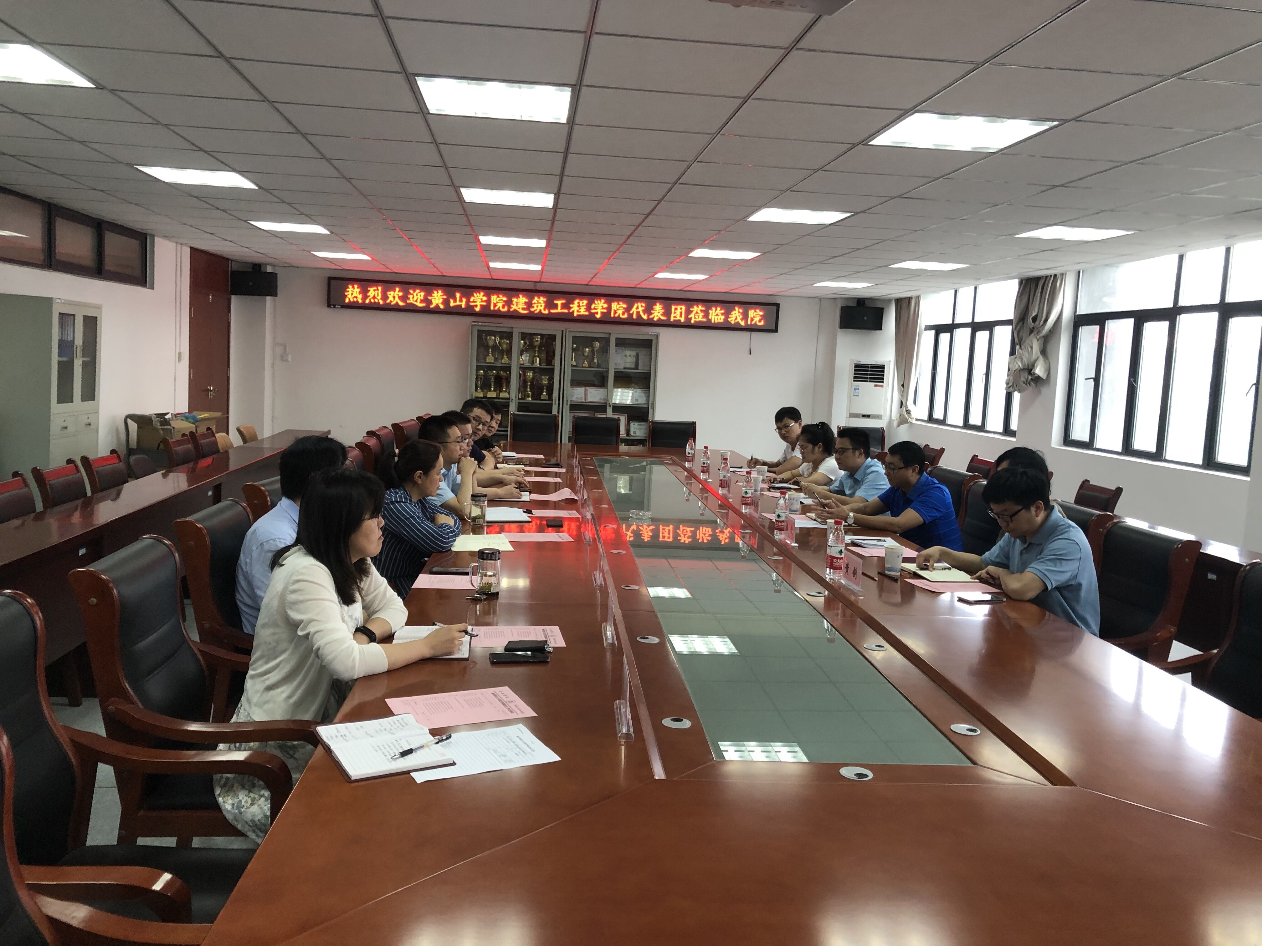 2020623日下午,黃山學院建筑工程學院周甄川院長攜建筑教研室主任汪斌等一行六人來合服學院城市建設與交通學院調研交流。城市建設與交通學院副院長華建兵在41305會議室熱情接待了來賓,雙方就專業評估認證、碩士點建設、實驗室建設和科研平臺搭建等內容展開交流討論。會議由華建兵副院長主持。