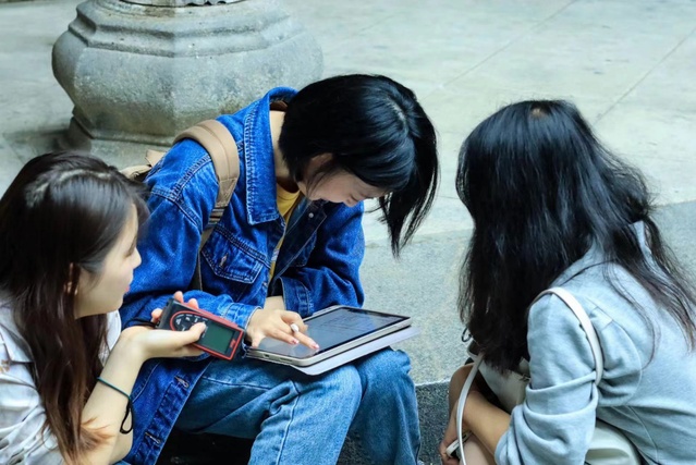 到達各自分配的測繪點后,同學們陸續投入到各自小組古建筑的測繪中。今天各組同學的任務是對所要測繪的古建筑尺寸進行初步測量。下午18時,各組陸續完成了當天的測繪任務。