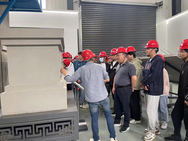 公司技術人員帶領同學們觀看了裝配式結構構件在工廠預制的各環節,重點介紹了預制構件生產原理、裝配式建筑施工原理、智能建造信息系統。同學們對不同裝配式結構構件的制備過程有了清晰的認識,并與技術人員進行了深入交流,收獲頗豐。