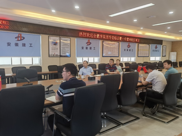 項目部經理崔沖首先表達了與我院進行科研合作和聯合人才培養的迫切需求;接著介紹了合肥一中淝河校區項目的基本情況并就項目建設中遇到的技術難題與我院教師進行了交流;最后,雙方圍繞科研合作、學生實習和就業等方面具體方案展開研討。