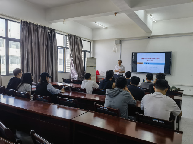 程濤首先介紹了項目的技術背景、科技問題及總體解決思路;分享了目前的主要研究成果、技術創新點和應用情況及效益,談及該項目對于推進行業科技進步的作用時,他號召同學們扎實學習專業本領,發揮自己的聰明才智,為推動道路工程行業貢獻力量。