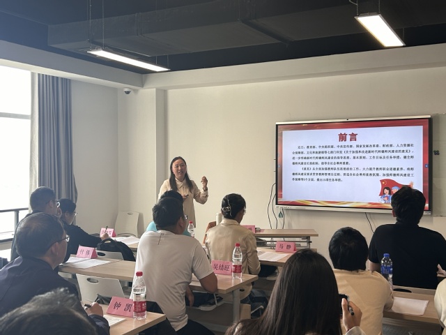 儀式結(jié)束后,杜娟書記為學(xué)員們講授“教師職業(yè)教育素養(yǎng)”,重點(diǎn)圍繞全方位構(gòu)建師德師風(fēng)建設(shè)新格局,倡導(dǎo)廣大教師做有理想信念、有道德情操、有扎實(shí)學(xué)識(shí)、有仁愛之心的老師。