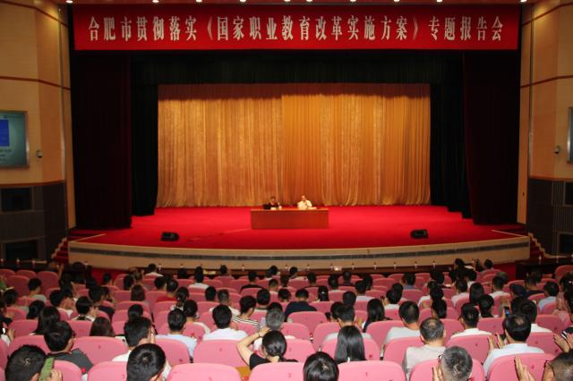 2019年6月10日下午,合肥市貫徹落實《國家職業教育改革實施方案》專題報告會在合肥市政府大禮堂召開。報告會邀請國家教育行政學院職業教育研究中心主任邢暉教授做專題報告,合肥市現代職業教育集團成員單位分管負責人、市教育局班子成員及處室負責人、各縣(市)區教育主管部門分管副局長及職成科科長等400人參加了報告會。會議由市教育局正處級調研員唐文水主持。