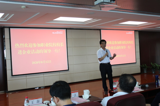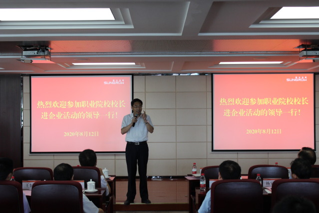在首屆合肥市職業院校校長進企業活動啟動儀式上,陽光電源集團副總裁張友權首先致歡迎詞,介紹了企業的業務與發展規劃,希望職業教育的發展為企業提供高素質人才。市發改委社會事業處副處長江立輝介紹了合肥市產教融合型城市創建工作。合肥市教育局黨委書記、局長王杰才在講話中首先感謝了合肥學院多年來支持地方職業教育發展,承辦了6屆職業院校專業課教師暑期到企業實踐活動。他表示,校長是掌舵人,更要了解企業。政府也樂于將納稅人的錢用于服務企業發展,企業參與校企合作的熱情也越來越強烈,職業院校校長要主動加強校企合作,校企雙方逐漸從“你是你,我是我”的階段進入“你中有我,我中有你”的階段,最后形成“你就是我,我就是你”的合作融合狀態。他希望參加活動的校長們成為火種,帶動合肥市職業教育發展,筑牢技術技能型產業工人的基座,保證我市經濟社會發展對人才的迫切需要。