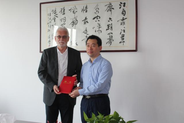 2016年5月25日,校長張文兵在行政樓九樓會議室熱情接待了德國下薩克森州教育部中國職教項目負責人克勞斯·比爾申科先生,并為其頒發了客座教授聘書。學校人事處處長陳愛娟、國際交流合作處處長賈峰、合肥職業院校教師能力發展中心執行主任高艷等人參加了頒發證書儀式。  張文兵校長對比爾申科先生的到來表示熱烈歡迎,了解了近期的工作情況,隨后,雙方就職業教育有關事宜進行了交流。張文兵校長表示,希望不斷加強中德雙方的合作與交流,引進德國職業教育的先進理念,學習了解德國職業教育體系、教學方法,吸收德國在汽車制造等優勢產業培養人才的做法和經驗,做好合肥市職業院校教師能力提升工作,培養滿足合肥市工業產業發展需要的高技能人才。比爾申科先生表示,很榮幸地受聘為合肥學院的客座教授,成為合肥學院的大家庭中的一員,今后將發揮自己的專業特長,為合肥職業教育,特別是職業院校教師的培養貢獻自己的力量,積極響應默克爾總理和李克強總理訪問合肥學院時提出的建設中德教育合作示范基地的指示,努力工作,成為中德職業教育合作的橋梁。 簡短的聘書頒發儀式結束之后,比爾申科先生立即投入到正在我校舉辦的合肥職業院校汽車專業骨干教師專項培訓的教學工作中。比爾申科先生是德國下薩克森州教育部機動車專業教育培訓總督學,現為德國下薩克森州教育部中國職業教育項目、下薩克森教育部電動汽車示范項目負責人。作為德國汽車行業專家、職業教育專家,他多年來堅守專業教學一線,在中國負責了多個職業教育交流培訓項目,2011年曾獲頒安徽省“黃山友誼獎”。2015年,受下薩克森州教育部委托,三次來肥協商共建安徽省中德職教師資能力中心事宜。本次來合肥學院,是應合肥學院合肥職業院校教師能力發展中心的邀請,為合肥職業院校汽車專業骨干教師做專項培訓。該項培訓在我校舉辦,從5月24日至28日,為期5天,來自我市職業院校的20名骨干教師參加,主要學習德國職業教育雙元制職業教育體系、汽車技術方向的培訓計劃和組織、職業教育中校企合作、開發以商業和過程導向的教學大綱等內容,為學員進一步研修德國職業教育打下基礎,提升我市職業院校汽車專業骨干教師的能力和素質。