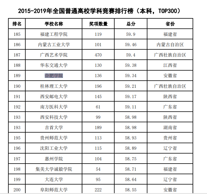 我校進入2015-2019年全國普通高校學科競賽排行榜,位列189位,全省第8位。