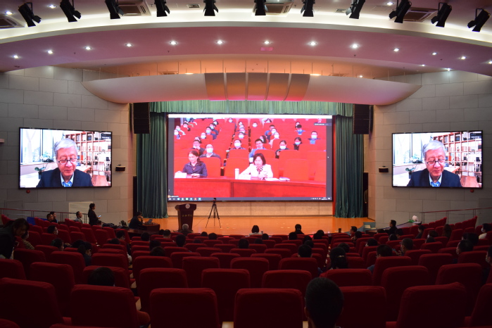 校長(zhǎng)吳春梅、副校長(zhǎng)陳秀及各學(xué)院骨干教師共150余人聆聽(tīng)了報(bào)告,吳春梅主持報(bào)告會(huì)。會(huì)議以智能交互遠(yuǎn)程視頻的形式進(jìn)行,這是我校首次采用現(xiàn)代信息化手段召開(kāi)的交互式線上報(bào)告會(huì)。