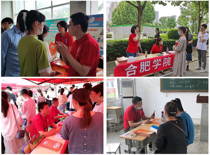 6月23日至27日,校招生辦組織11批40余名招生宣傳員,由各二級學院院領導帶隊前往安徽省16個地市的67所高中。同時在6月25日至26日期間,校招生辦還組織宣傳教師分赴阜陽、臨泉、馬鞍山、蕪湖、銅陵、宿州和蚌埠等地市,參加安徽省教育招生考試院組織的“我為群眾辦實事”系列志愿填報活動共9個場次。參與招生宣傳的教師通過熱情、高效、細致的宣傳和咨詢服務,為考生及家長填報志愿提供了科學合理的建議和意見,我校的招生宣傳得到了廣大考生及家長的高度關注。