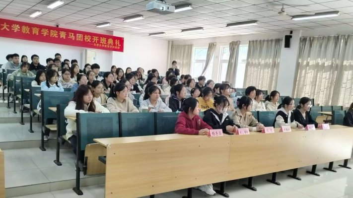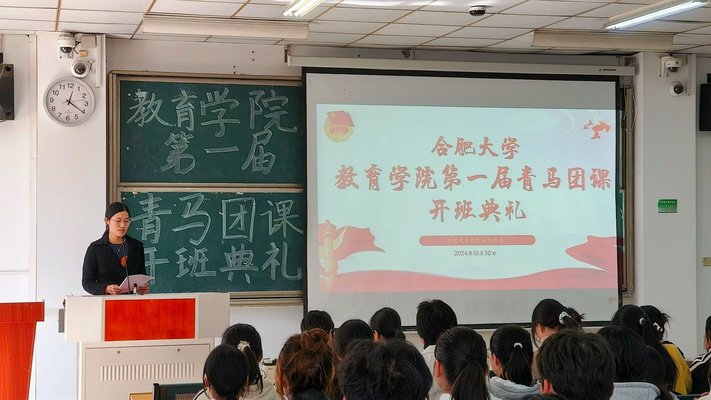 加強青年學生的思想政治教育,培養一批有理想、有道德、有文化、有紀律的社會主義建設者和接班人10月30日中午12點15分合肥大學教育學院第一屆青馬團課開班典禮和第一次授課在一期3棟101教室拉開帷幕。出席典禮的有學院團委副書記張弦樂團委學生兼職副書記朱思宇、周琴,主席團成員周友夢蝶、楊子涵、蘇雯和各部門委員以及各班班長、宣傳委員、思政委員和組織委員。組織部部長徐錦瑤主持此次開班典禮。