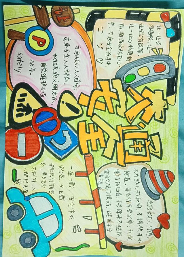 此次活動吸引了學生的積極參與,他們利用課余時間搜集資料,精心設計手抄報內容。同學們的作品不僅版面設計精美,而且主題多樣,涵蓋了交通信號識別、安全行走規則、騎行和乘車安全等多個方面,充分展示了學生們對交通安全重要性的認識和理解。活動參與者用手中的筆繪出生動的圖畫、寫下有力的文字,呼吁大家學習交通法規,并將其應用到日常生活中,共同營造一個安全、和諧的校園環境