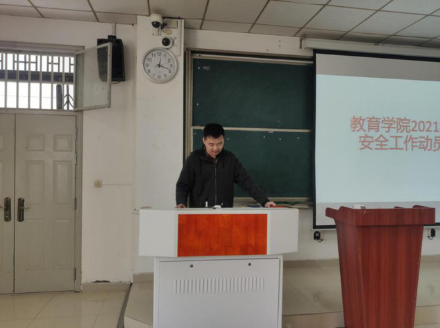 3月24日中午,教育學院召開2021年春季安全教育大會,傳達近期學校有關安全工作的通知要求和會議精神會議由教育學院學工辦主任符琳主持,全體學生干部參加。