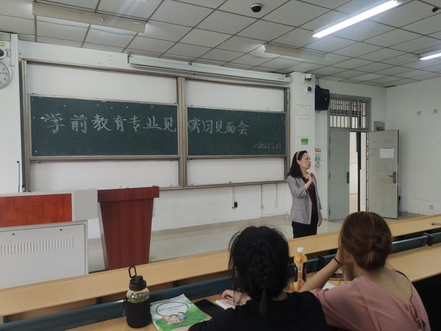 521日中午一點在三棟101教室舉行了教育學院學前教育專業見(實)習見面會,參加會議的人員有衛萍院長,車雪蓮老師,魯世秀老師,以及18-20級全體學前教育(對口)班的學生。