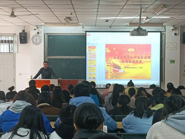 11月23日中午,教育學院于3棟101舉行第十九期入黨積極分子培訓班第五次黨課培訓學習。合肥學院黨委巡察辦丁增云老師受邀擔任本次黨課的主講人。 首先,丁增云老師為各位入黨積極分子解答了有關黨員信仰的問題。接著,丁增云老師詳細介紹了大學生黨員的先鋒模范作用,從概念到內容再到如何做一一進行了講解。然后,丁老師重點說明大學生的入黨動機和入黨程序。他對入黨積極分子提出了要端正入黨動機的要求。同時他告訴入黨積極分子一個黨員應該承擔的責任,一個好的黨員應該平時要看得出來“胸中有理想,心中有群眾,渾身是正氣,做人要大氣”,關鍵時刻要站得出來。最后,丁增云老師提出入黨積極分子們應在生活中處處發揮先鋒模范作用,展現大學生黨員的青春風采,彰顯黨的初心使命。 通過這次會議,大家從中體會到了黨對祖國發展的深遠意義和偉大影響,感受到作為入黨積極分子肩上的責任與擔當,并堅定了建設更加強大的黨的信心和勇氣。(教育學院記者榮嵐、范媛媛)