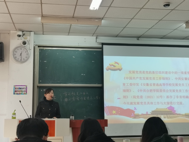 11月25日中午12點25分,教育學院入黨積極分子培訓班第八次黨課在3棟101教室如期舉行。此次黨課主講人為合肥學院黨委組織部姚娜老師。 在此次黨課中,姚娜老師主要從如何申請入黨、對發展對象的確定和考察、預備黨員的接收、預備黨員的轉正四個方面進行介紹,同時結合本校實際情況和身邊實例進行具體講述,指出青年入黨積極分子首先要從根本上弄清楚自己為什么要入黨,加入中國共產黨是否有著在突發事件、困難之時隨時戰斗,勇于沖鋒的思想意識,也指出加入中國共產黨是為人民謀福利,為國家謀富強,要對一切功利性入黨動機進行堅決的抵制。 姚娜老師強調“大時代需要大擔當”。青年一代有理想、有本領、有擔當,國家就有前途,民族就有希望。青年干部要不忘初心、牢記使命,要苦練“內功”、立志“決心”、實干“擔當”,多些腳踏實地、少些好高騖遠,在干事中錘煉意志、增長才干、豐富閱歷,提高工作能力。 本次黨課培訓使每一位入黨積極分子受益匪淺。相信通過此次黨課培訓,入黨積極分子們將以青春為筆,書寫奮斗華章。(教育學院記者 任心怡)