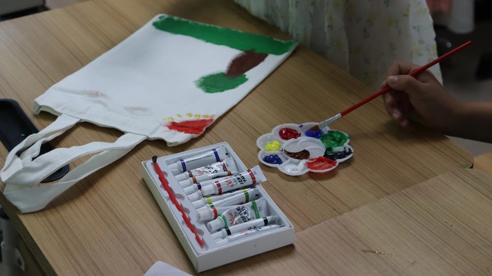 無論是“籬落疏疏一徑深,樹頭新綠未成陰”的小小村落,還是華燈初上、車水馬龍的繁華都市;無論是山環(huán)水繞的紅磚青瓦,還是拔地而起的玉樹瓊樓,只要是家鄉(xiāng)總是令人如癡如醉,魂牽夢縈。為豐富社區(qū)青少年的假期文化生活,幫助他們更加了解家鄉(xiāng)的環(huán)境,感受家鄉(xiāng)的變化,7月8日,合肥學院教育學院“七彩童年,‘育’你相伴”志愿團隊來到濱湖和園社區(qū),志愿者王欣悅和尹冰清為孩子們帶來了“繪出我的美麗家鄉(xiāng)”公益美術課堂,讓孩子們用五彩的顏料在帆布包上繪出心中的家鄉(xiāng)。 家鄉(xiāng)的模樣是愛意在腦海中一筆一墨的勾勒,是回憶在腦海中一點一滴的匯聚。志愿者王欣悅告訴孩子們,家鄉(xiāng)是難忘的風景,是念念不忘的美食,是獨特的舞蹈與服飾,也是在勞動人民的汗水下鑄造的精美絕倫的建筑。隨著志愿者話音落下,孩子們稚氣的眼睛充溢星光,好像盛滿了家鄉(xiāng)的模樣,緊接著孩子們便興高采烈地分享自己的故鄉(xiāng)。