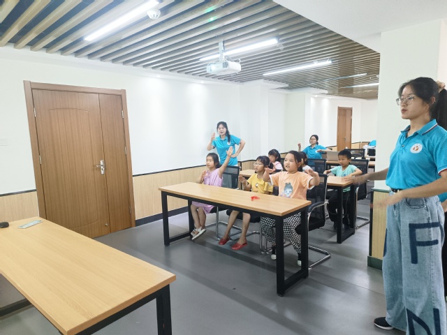 前行是在每一次的努力下進步。孩子們短暫地感受了小游戲正話反說的挑戰后,又迎來了一首歡樂的歌曲《天天向上》,“我們天天向上散發著光,天天向上乘風破浪,一起溫暖歡笑飛揚?!卑殡S著音樂的律動,孩子們認真學習志愿者的動作,舞動自己的小小雙手,努力做好每一個動作,盡管在休息時間也未曾停下練習。對比初次嘗試時動作不連貫或卡不上點的情況,在隨后的風采展示中,孩子們動作流暢,在音樂中綻放著自己自信的笑容。手勢舞能通過肢體動作和舞蹈節奏傳遞思想和情感,給孩子們藝術和美的熏陶。孩子們用流暢自然的動作、整齊劃一的手勢,協調優美的身體語言,詮釋著音樂的美感,自信的面龐展示著青春的朝氣,洋溢著青春的色彩,大家盡情體驗手勢舞帶來的快樂,展現了積極向上、朝氣蓬勃的良好風貌。