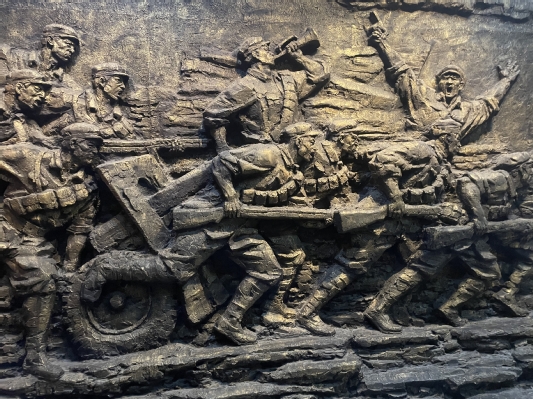 天若有情天亦老,人間正道是滄桑。安定和平的年代,是英烈們用生命壘造出來的。帶著對革命烈士崇高的敬意,志愿者們走進館內,詳細去了解這場戰役的歷史。進入場館后,一幅巨大的浮雕映入眼簾,浮雕上雕刻的是百萬雄師過大江的壯闊景象。跟著講解員的指引,志愿者們認真的參觀各個場館。館中內容包括革命文物、圖片、文字等等,展現了渡江戰役的歷史經過以及影響和推動歷史發展的重要人物,詳細介紹了解放軍戰士英勇抗戰的革命斗爭史。陳舊的手槍、還原的木質帆船,置身于逼真的場景中,參觀者仿佛聽見了戰士們的吶喊聲、劃船聲,看見戰士們手持槍支站在船頭,浴血奮戰的場景。