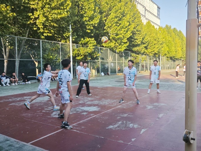 隨著一聲哨響,兩方的隊員便龍爭虎斗,各施絕技,通過一個個精彩發球、扣球、攔網,雙方隊員都充分發揮出自己精彩的個人技術及戰術配合,拉開了一局令人拍案叫絕的持續賽,讓在場的觀眾都歡呼不已。前期雙方你追我趕,比分僵持不下,但教育學院男排隊員們憑借更為縝密的配合,在比賽后期連續進攻,逐漸拉開了比分,最終以25:19的巨大優勢拿下了第一局比賽。雙方短暫休息后,易邊,開始了第二輪的角逐。第二輪比賽一開始,教育學院男排仍展現出強大氣場,隊員們個個精神抖擻,配合默契,一個個巧妙的傳球,吊球,一次次精彩的扣殺,教育學院男排連連得分,贏得了不錯的開局。先進制造工程學院的男排隊員也不甘示弱,憑借默契的配合,昂揚的斗志,逐漸縮小了與教育學院的差距。教育學院男排不斷調整戰術,靈活的戰術加上隊員間的默契配合,使得教育學院男排以巨大的優勢率先拿到賽點,現場氣氛瞬間達到了頂點,教育學院男排隊員頂住壓力,以一個完美的發球結束了第二輪比賽。最終在下午四點三十四分,教育學院男排以25:13的成績,順利拿下了第二輪比賽,大比分也定格在了2:0,教育學院男排贏得了這場比賽的勝利。