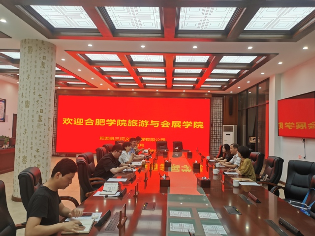 宋玉軍介紹了合肥學院作為應用型高校的辦學經驗和旅游與會展學院的人才培養模式。重點介紹了國家級一流專業——旅游管理專業的培養目標、就業情況等。他表示,希望形成全方位的產教融合,培養服務地方和本土化企業的專業人才,為合肥市旅游行業注入新生力量。鄭嬗婷則表示三河古鎮景區近幾年的發展變化非常大,展現了“皖南水鄉”、“千年古鎮”的獨特風景,將來在公司的運營下,一定會吸引更多游客,成為合肥市和肥西縣一張亮眼的旅游“名片”。希望未來可以加強校企合作,實現共贏。