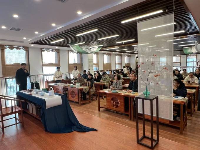 活動伊始,在旅游與會展學院教師袁夢如的主持下,本次活動順利拉開序幕。首先合肥學院工會主席宣文受邀上臺致辭,對教職工茶文化協會的建立表達祝賀與支持。隨后朱硯文老師與全體協會成員分享生活茶事美學,闡述了茶的歷史、發展和現狀,介紹茶的分類,六大茶類的特征,六大茶類的工藝三個部分。