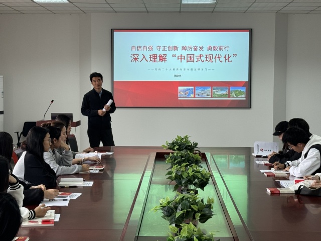 黨課伊始孫靜宇書記結合理論與實踐,從什么是中國式現代化、為什么要實現“中國式”現代化、中國式現代化“新”在何處、中國式現代化將如何開辟人類新路四個方面對“中國式現代化”進行了解讀。隨后他指出:中國式現代化,是中國共產黨領導的社會主義現代化,既有各國現代化的共同特征,更有基于自己國情的中國特色。不同階段“發展”的含義不同,其根本在于需要解決的問題發生了變化。當前,高質量發展是全面建設社會主義現代化國家的首要任務。最后,孫書記希望參會的入黨積極分子們正確理解中國式現代化,進一步堅定信念和決心,奮進擔當時代新使命。
