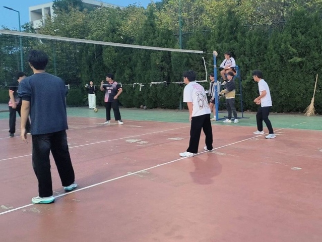 當一聲清脆的哨響拉開比賽的序幕,運動員們展開了激烈的比拼。隨著生物院鏗鏘有力的發球全場氣氛瞬間被引燃,加油聲、吶喊聲絡繹不絕。彩繩飛揚,排球場上一派緊張熱烈的歡騰景象。即使在你來我往的防守與發球院以較小分差落后于教育學但學院的隊員們依舊情緒高漲,在重整旗鼓過后以驚險的分數差距追上,在加時賽取得第一場比賽的勝利隨著第二場比賽開始,各院男排隊員陸續入場,緊張的氛圍彌漫在賽場上。當哨聲的再度響起,男隊員們沉著冷靜,積極應對,在教育院分數的步步逼近下調整心態,穩定發揮,順利拿下整場比賽的勝利。