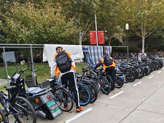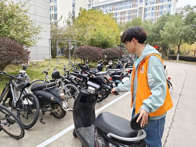 在校園的一些停車點附近,隨處可見生物院志愿者們忙碌的身影。他們將那些隨意停放的自行車和電動車整理擺放在合適的停車點,將不小心倒下的車輛扶正。在他們的努力下,宿舍樓下原本雜亂的停車區變得井然有序。同學們的出行變得更加暢通無阻,不再需要從混亂的車堆中艱難前行。消除了車輛亂停可能導致的安全隱患,為校園營造了更加安全和諧的環境,同時為校園文明建設獻出了一份自己的力量。