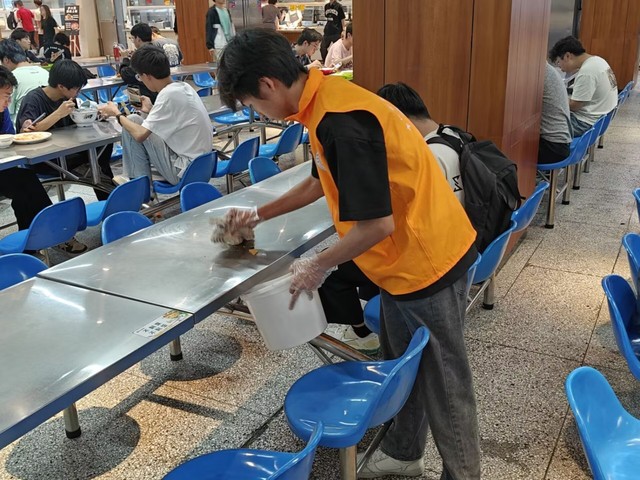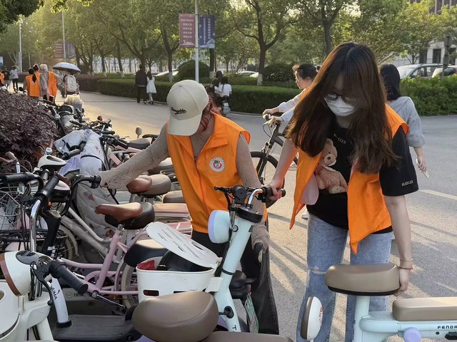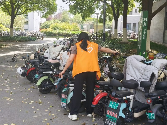 在用餐期間,志愿者們分成若干小組,分別負(fù)責(zé)食堂大廳、餐桌椅、餐具回收區(qū)等區(qū)域的清潔工作。他們手持抹布、清潔工具,認(rèn)真擦拭每一張餐桌椅,清理餐具回收區(qū)的雜物和油污,確保食堂環(huán)境干凈整潔,為就餐的同學(xué)們提供了良好的用餐環(huán)境。在改善食堂衛(wèi)生的同時(shí),另一組志愿者則聚焦于宿舍樓下停車(chē)秩序問(wèn)題。隨著校園內(nèi)車(chē)輛數(shù)量的增加,宿舍樓下停車(chē)秩序混亂,不僅影響了同學(xué)們的正常通行,也給校園環(huán)境帶來(lái)了安全隱患。志愿者們將車(chē)輛停放在指定區(qū)域,他們將隨意停放的車(chē)輛扶正,確保車(chē)輛停放整齊。