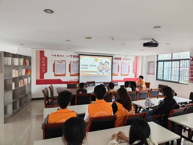 活動現場,大學生志愿者化身“小老師”,用生動活潑的語言和精美PPT,向孩子們講解了勞動的意義和價值。從古代的農耕文明到現代的科技進步,從日常生活中的家務勞動到偉大的勞動者故事,孩子們聽得津津有味,不時舉手提問,現場氣氛十分熱烈。在互動環節,志愿者們以“勞動知識大挑戰”為主題開展趣味問答,為了激發孩子們的參與熱情,志愿者提前準備了色彩繽紛的糖果作為獎勵。隨著貼近生活與學習的問題接連拋出,孩子們紛紛踴躍舉手,眼神中滿是期待。有的孩子清晰準確地說出勞動法的名稱,勞動的發展趨勢;有的則列舉出洗碗筷、疊衣服、拖地等多項家務勞動。