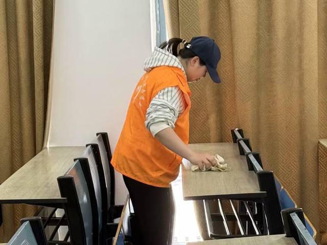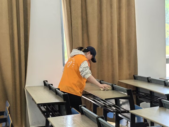 活動開始前,各負責人對參與人員進行了詳細的任務分配。在清掃過程中,大家分工明確、配合默契。同學們手持掃帚、抹布等清潔工具,穿梭在教室、走廊和樓梯間,認真擦拭著桌椅、門窗,清掃地面的垃圾,不放過任何一個衛(wèi)生死角。他們不怕臟、不怕累,以飽滿的熱情投入到清掃工作中,展現出良好的精神風貌和團隊協作能力。經過兩個小時的努力,三十五棟教學樓的公共區(qū)域煥然一新。教室里桌椅擺放整齊,地面干凈整潔;走廊和樓梯也變得寬敞明亮,空氣中彌漫著清新的氣息。