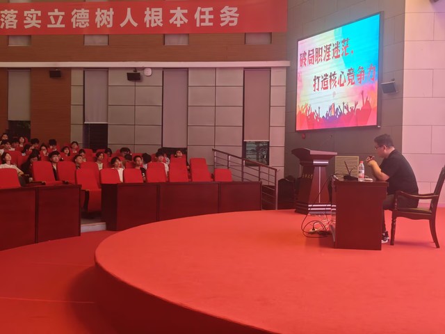 2025513日晚630分,生物食品與環境學院“破局職涯迷茫,打造核心競爭力”主題講座于圖書館A報告廳舉行?;顒佑蓪W院黨委副書記晉松、學生工作辦公室主任陳玲主持,特邀安徽安科生物工程(集團)股份有限公司人力資源經理王龍擔任主講,為全體大三學生及生物制藥專業新生帶來一場職業發展導航盛宴,現場反響熱烈。
