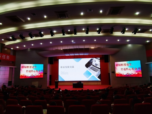 2025年5月13日晚6時30分,生物食品與環境學院“破局職涯迷茫,打造核心競爭力”主題講座于圖書館A報告廳舉行。活動由學院黨委副書記晉松、學生工作辦公室主任陳玲主持,特邀安徽安科生物工程(集團)股份有限公司人力資源經理王龍擔任主講,為全體大三學生及生物制藥專業新生帶來一場職業發展導航盛宴,現場反響熱烈。
