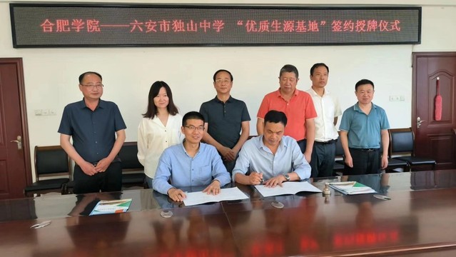 座談會后,雙方進行了合肥學院和獨山中學“優質生源基地”簽約授牌儀式。黃永富副校長表示將通過“優質生源基地”的平臺建設增強兩校之間的溝通、交流與合作。