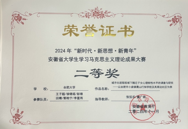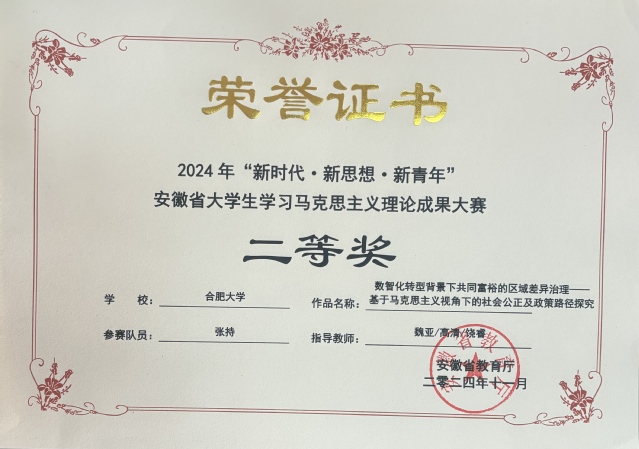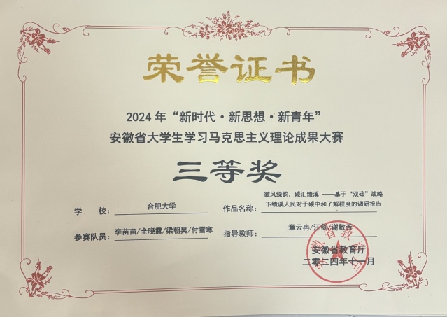 日前,由安徽省教育廳主辦的2024年“新時(shí)代?新思想?新青年”安徽省大學(xué)生學(xué)習(xí)馬克思主義理論成果大賽圓滿落下帷幕。我校選送的作品榮獲二等獎(jiǎng)3項(xiàng)、三等獎(jiǎng)1項(xiàng)。
