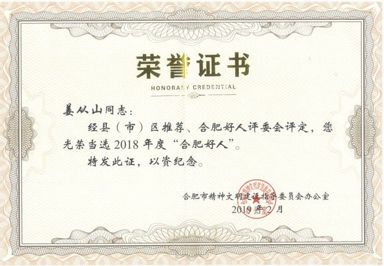 圍繞打造“好人之都 文明之城”,合肥大力開展社區好人評選,引導市民發現好人、選樹好人、學習好人。近期,團委、馬克思主義學院聯合推薦姜從山老師通過經開區臨湖社區申報“合肥好人”榮譽。在201810月合肥好人評選中,我校馬克思主義學院姜從山老師榮獲 “助人為樂”類“合肥好人”榮譽稱號。