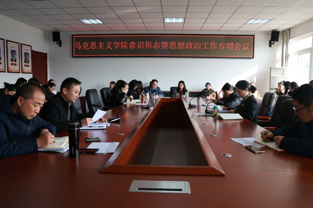 為深入學習貫徹習近平新時代中國特色社會主義思想,進一步加強我院意識形態與思想政治工作。1218日下午,馬克思主義學院召開意識形態暨思想政治工作專項會議,學習習近平總書記關于意識形態工作和馬克思主義理論研究工作的相關指示精神。我院全體思政課教師參會,會議由直屬黨支部書記、副院長蘇冰主持。