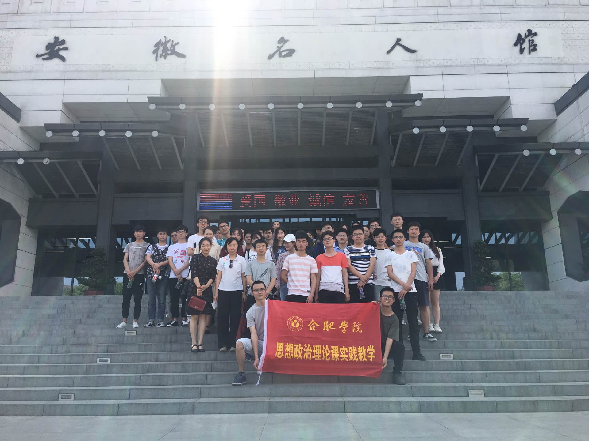 2019年5月24日下午,合肥學(xué)院馬克思主義學(xué)院黃瑩瑩、張亞老師帶領(lǐng)17級(jí)機(jī)械系和中文系的部分同學(xué)到安徽名人館開展本學(xué)期概論課實(shí)踐教學(xué)。