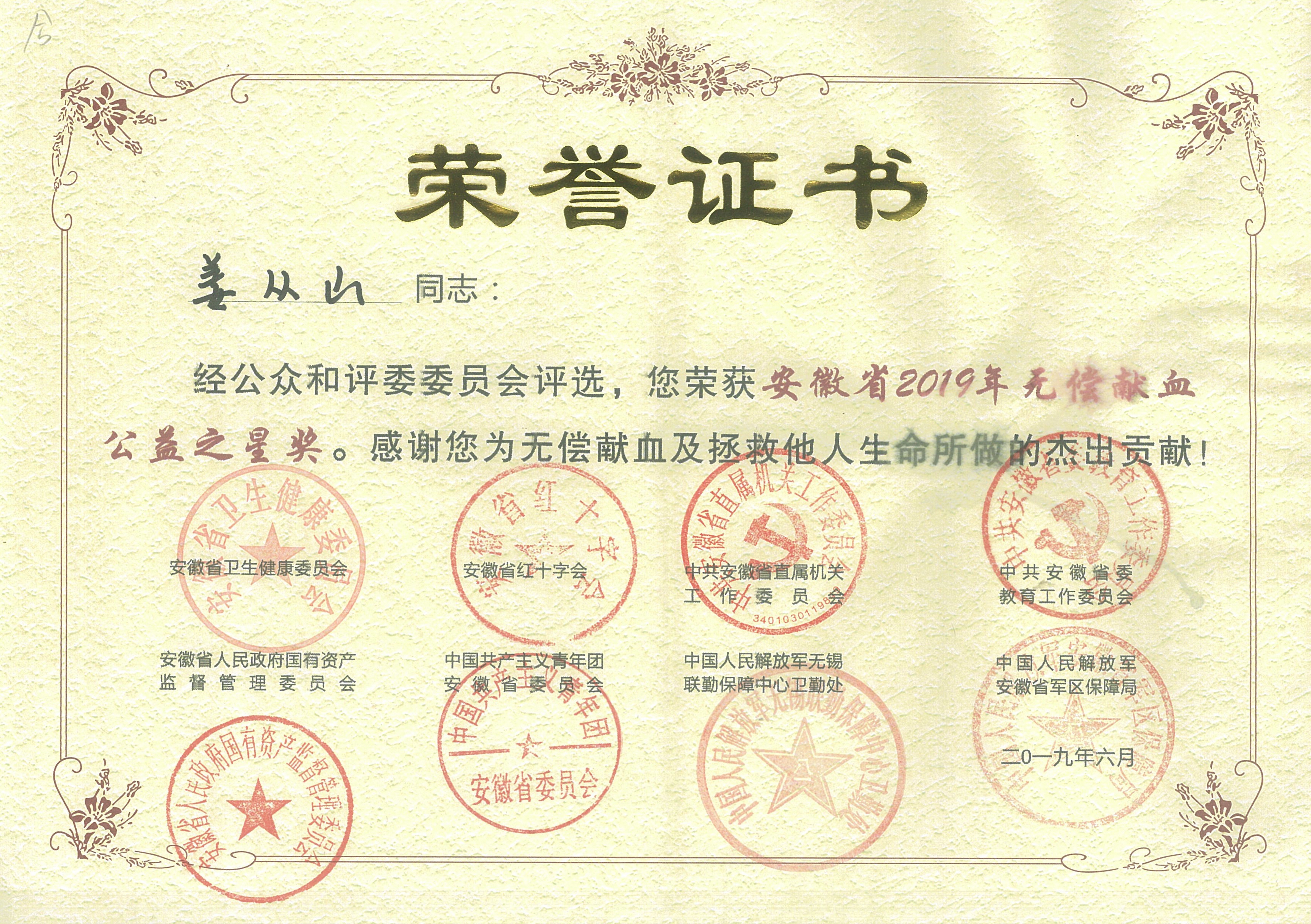合肥學(xué)院網(wǎng):姜從山老師獲安徽省2019年“無償獻(xiàn)血公益之星”2019-06-18
