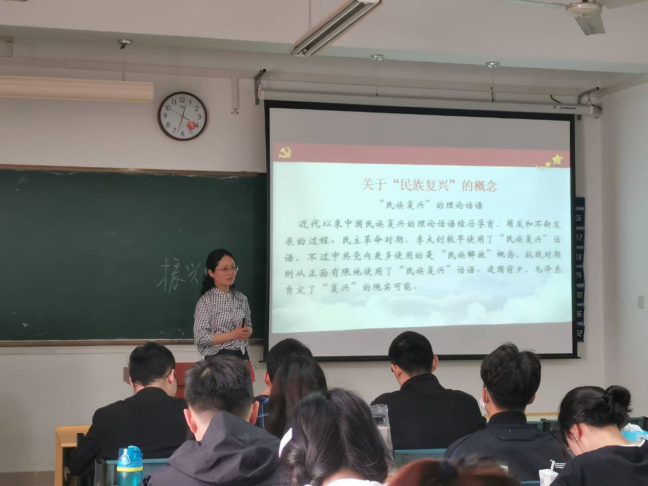 2021年5月17日,旅游與會展學院在博學樓A座302教室邀請馬克思主義學院的蘇冰老師給學生第二黨支部上了一次題為《百年大黨與民族復興》的黨課。