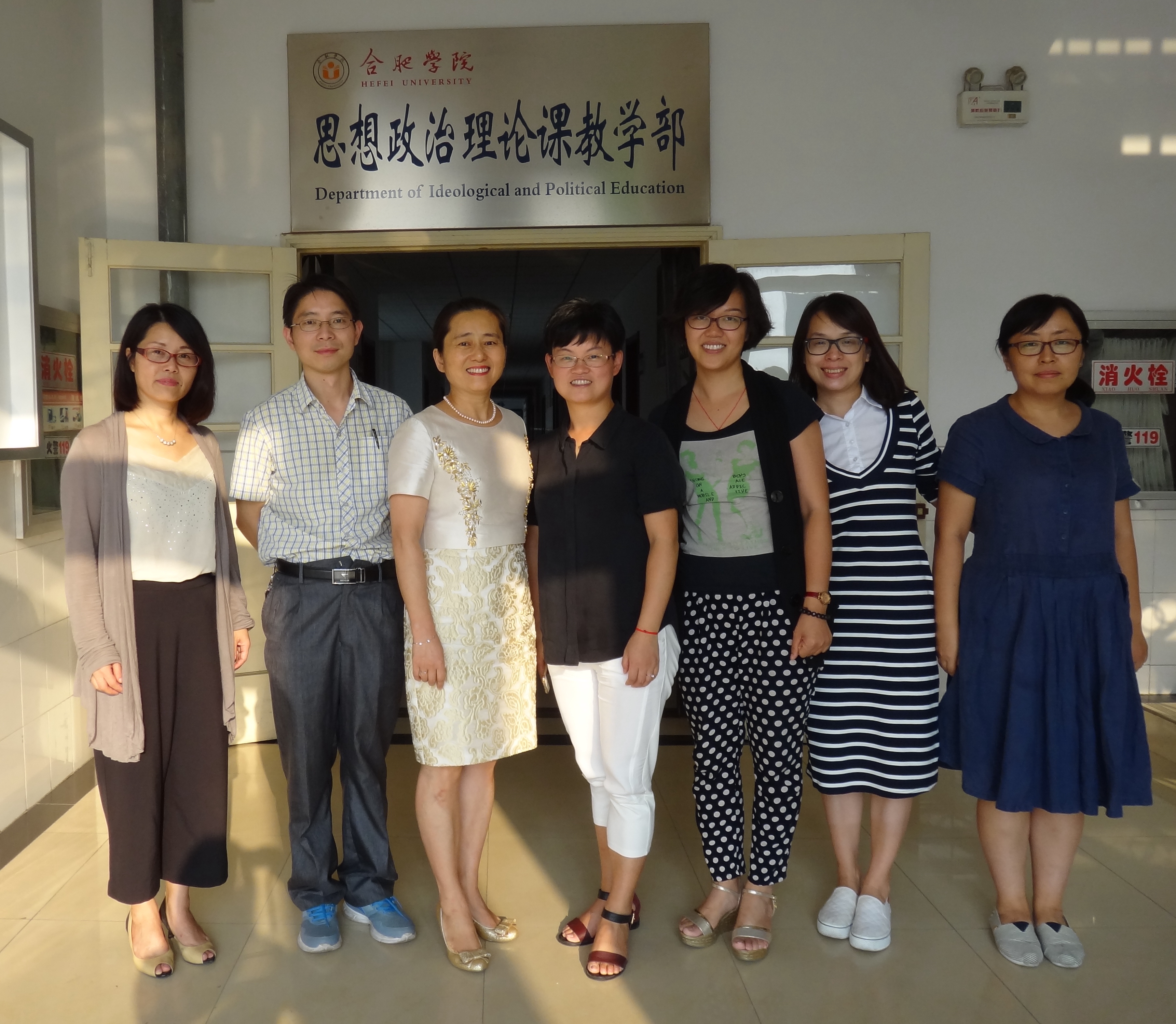 2016年9月22日下午,浙江樹人大學基礎部副主任、直屬支部書記陳俏巧、基礎部副主任劉斌、社科部項麗鶯、社科部講師林依爽、毛艷等一行來思政部進行考察交流,主要考察合肥學院思政課教學改革與特色工作等課程建設情況。思政部主任胡艷萍熱情接待了浙江樹人大學的同行。